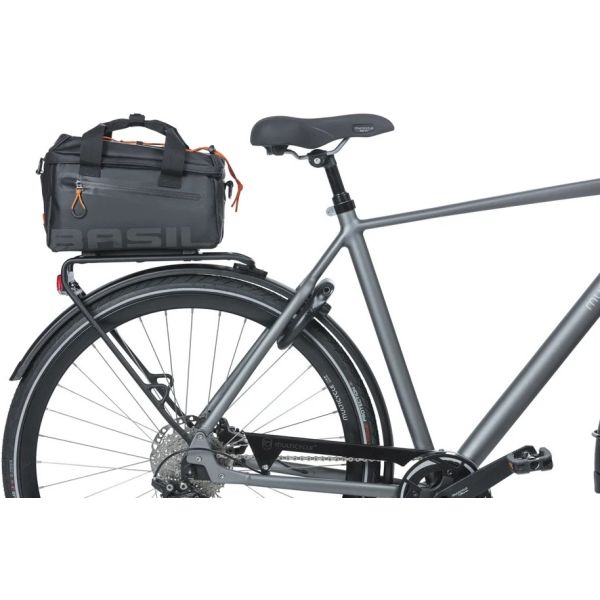 De Basil Miles Tarpaulin bagagedragertas MIK is de perfecte keuze voor sportieve fietsers en avonturiers. Of je nu op fietsvakantie gaat of een dagtocht maakt, deze multifunctionele en waterdichte tas is een onmisbare metgezel. Gemaakt van sterk en waterdicht tarpaulin en ontzettend multifunctioneel. De tas is zwart maar heeft sportieve oranje details.
