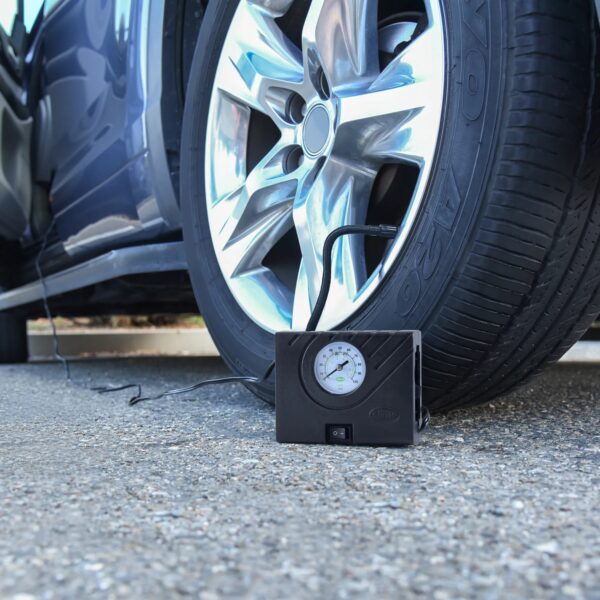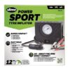 De Slime Power Sport Compressor is een compacte en krachtige luchtcompressor waarmee een standaard autoband binnen 12 minuten volledig opgepompt kan worden. Geschikt voor gebruik bij motoren, quads en auto’s. De compressor wordt geleverd met diverse ventieladapters voor het oppompen van onder andere ballen, luchtbedden en andere opblaasbare producten. Dankzij de geïntegreerde meter is de bandenspanning eenvoudig en nauwkeurig af te lezen in zowel bar (0 – 6.89) als psi (0 – 100). Daarnaast is het apparaat voorzien van een helder LED-lampje en een 2.9 meter lange stroomkabel. De compressor wordt standaard geleverd in een stevige draagtas. Meegeleverde aansluitingen: