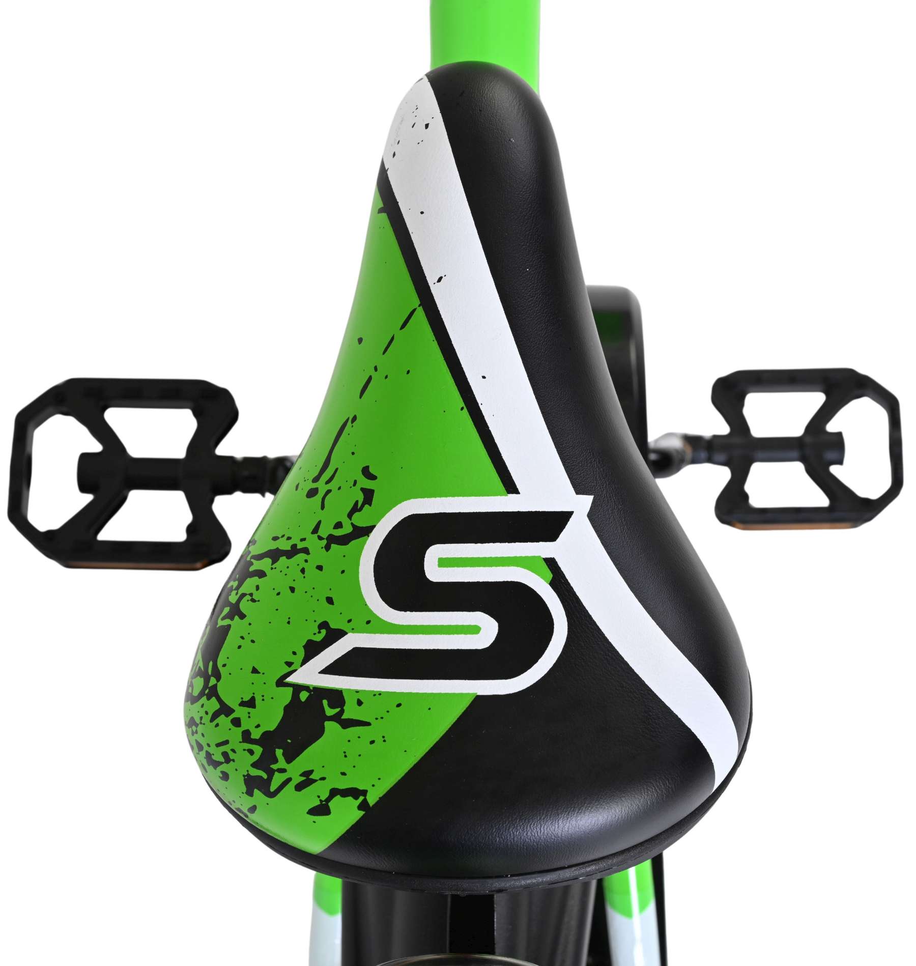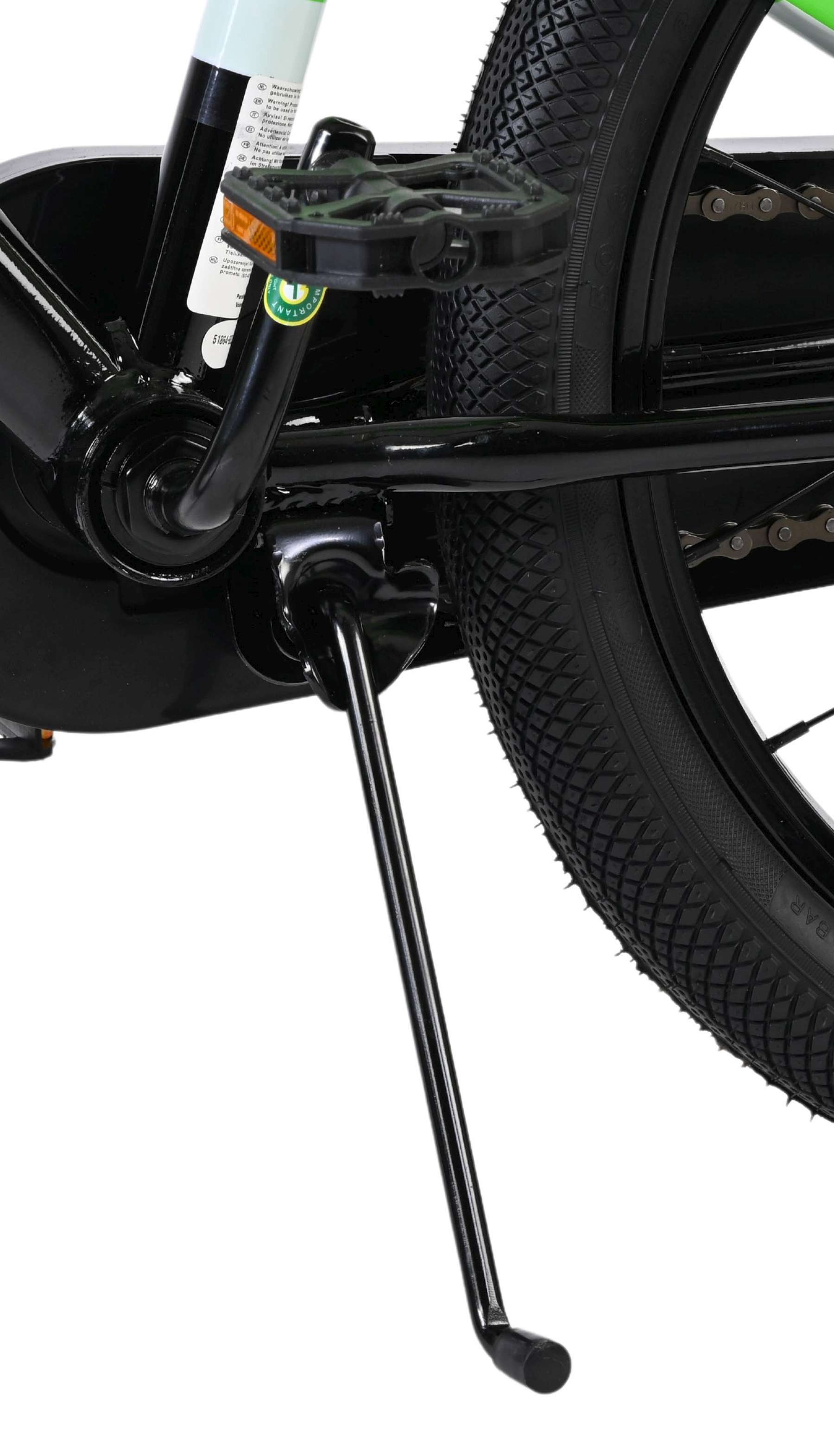 Veiligheid staat voorop! Het sterke stalen frame heeft met de stoere groen/zwarte kleurstelling een zeer sportieve uitstraling. Met de bidon in de praktische bidonhouder heeft uw kind altijd iets te drinken bij zich. De spatborden houden al het opspattend vuil tegen. Om vaart te minderen heeft de fiets zowel een hand- als terugtraprem. Ter bescherming van de kleine vingertjes is de kettingkast gesloten. De fiets heeft zijwielen en een stevige standaard.